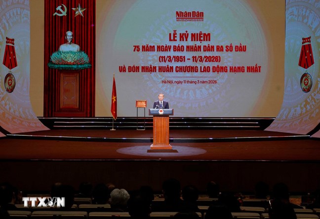 Trước đó, ôn lại lịch sử 75 năm ngày Báo Nhân Dân ra số đầu (11/3/1951-11/3/2026) tại buổi lễ, Ủy viên Trung ương Đảng, Tổng Biên tập Báo Nhân Dân Lê Quốc Minh, Phó Trưởng ban Tuyên giáo và Dân vận Trung ương, Chủ tịch Hội Nhà báo Việt Nam, cho biết được lãnh đạo, chỉ đạo trực tiếp, toàn diện của Đảng, Bác Hồ, các đồng chí Tổng Bí thư, nhà lãnh đạo tiền bối qua các thời kỳ, Báo Nhân Dân đã khẳng định vị trí của mình trong dòng chảy cách mạng, giải phóng dân tộc, thực hiện thành công cuộc cách mạng dân tộc dân chủ nhân dân, đấu tranh thống nhất đất nước, hội nhập, xây dựng và bảo vệ tổ quốc Việt Nam xã hội chủ nghĩa.