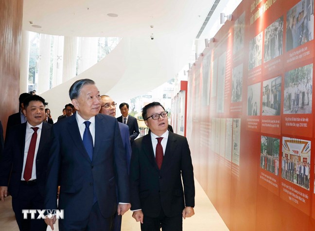 | Tổng Bí thư Tô Lâm tham quan trưng bày ảnh của Báo Nhân Dân. Ảnh: Thống Nhất/TTXVN |