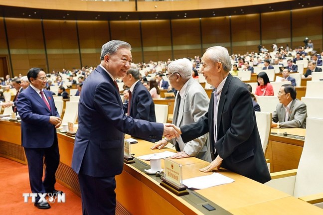 | Tổng Bí thư Tô Lâm cùng đại biểu tham dự phiên bế mạc kỳ họp. Ảnh: TTXVN |