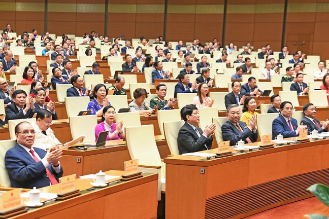 Quốc hội trân trọng cảm ơn các đại biểu Quốc hội đã tận tụy hết lòng, toàn tâm, toàn ý với công việc, ủng hộ chủ trương đổi mới trong xây dựng pháp luật, sẵn sàng làm việc cả các ngày thứ Bảy và ngoài giờ hành chính; thảo luận sôi nổi, dân chủ, thẳng thắn, sâu sắc, đúng trọng tâm, với tình cảm, tâm huyết, trách nhiệm thực sự trước đất nước, trước Nhân dân, sẵn sàng cống hiến và tin tưởng vào tương lai tươi sáng của dân tộc.