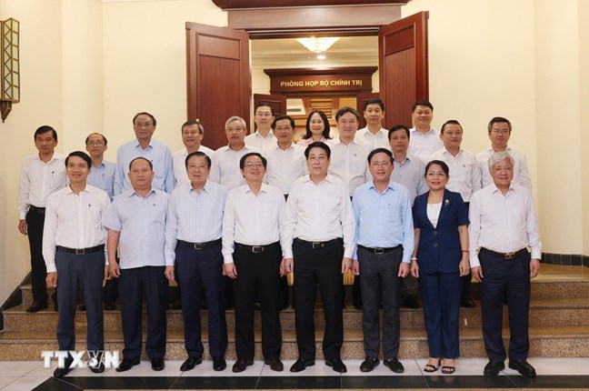 Kết luận buổi làm việc, Chủ tịch nước Lương Cường ghi nhận, đánh giá cao những kết quả quan trọng mà hai tỉnh đã đạt được, cơ bản tán thành với dự thảo các văn kiện; các tỉnh đã triển khai thực hiện theo tinh thần Chỉ thị số 45-CT/TW, đánh giá toàn diện kết quả đạt được trong 5 năm qua, thẳng thắn chỉ rõ hạn chế, nguyên nhân và rút ra bài học kinh nghiệm. Phương hướng, mục tiêu, nhiệm vụ và giải pháp giai đoạn 2025-2030 thể hiện quyết tâm chính trị, tầm nhìn phát triển, xác định nhiệm vụ trọng tâm và đột phá, đã quán triệt và cụ thể hóa những chủ trương, định hướng lớn trong các dự thảo văn kiện Đại hội lần thứ XIV của Đảng và các văn bản của Trung ương, Bộ Chính trị ban hành gần đây.