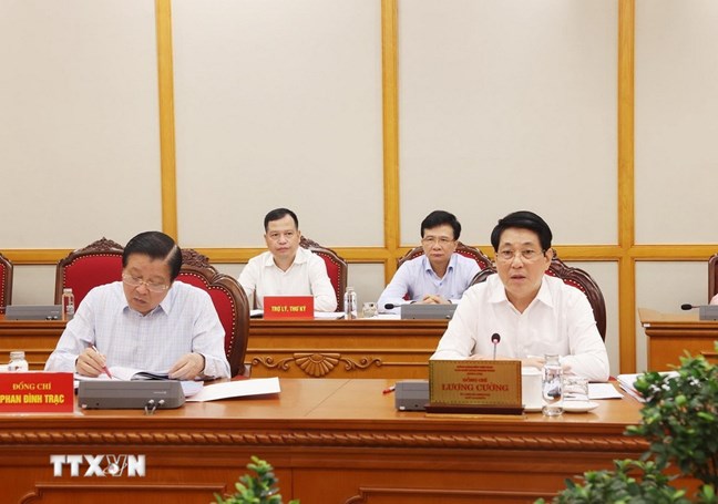 | Chủ tịch nước Lương Cường kết luận cuộc làm việc |