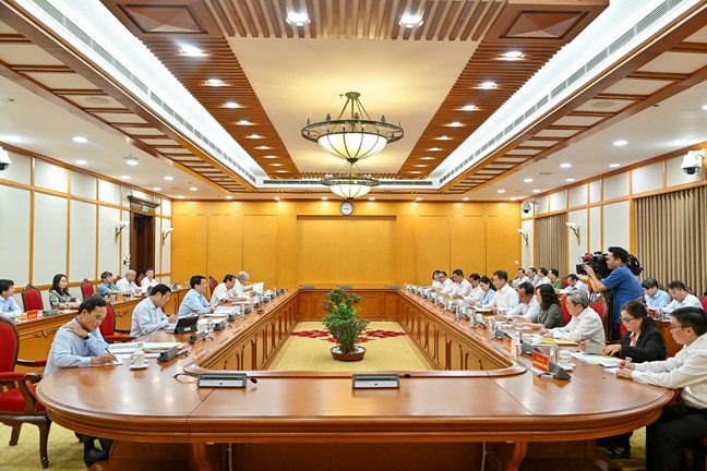 | Các đồng chí trong Tổ công tác số 3 làm việc với Ban Thường vụ Tỉnh ủy Đồng Nai. (Ảnh: THỦY NGUYÊN) |