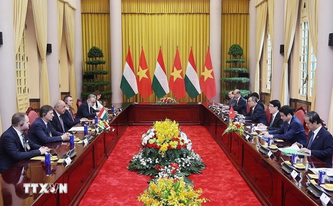 Tại hội đàm, hai vị Nguyên thủ bày tỏ vui mừng về những bước phát triển tích cực của quan hệ Việt Nam - Hungary trên nhiều lĩnh vực, nhất là kể từ khi hai nước nâng cấp quan hệ lên Đối tác toàn diện vào năm 2018. Hai bên đã trao đổi nhiều đoàn các cấp, nhất là cấp cao. Kinh tế tiếp tục là điểm sáng của quan hệ hai nước với kim ngạch thương mại hai chiều đạt gần 1 tỷ USD năm 2024. Hợp tác trong các lĩnh vực khác như giáo dục - đào tạo, môi trường, văn hóa, du lịch, quốc phòng - an ninh, giao lưu nhân dân… tiếp tục đạt kết quả tốt đẹp.