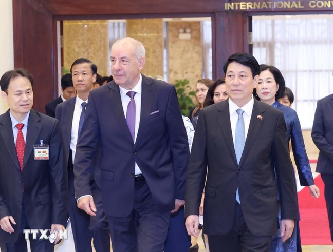 Trong không khí thắm tình hữu nghị, thay mặt Nhà nước và nhân dân Việt Nam, Chủ tịch nước Lương Cường nhiệt liệt chào mừng Tổng thống Hungary Sulyok Tamas và Phu nhân cùng Đoàn đại biểu cấp cao Hungary sang thăm chính thức Việt Nam.