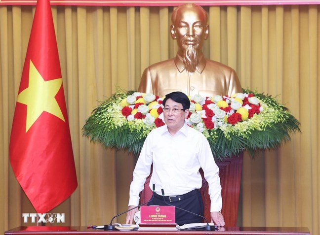 | Chủ tịch nước Lương Cường phát biểu chỉ đạo. Ảnh: Lâm Khánh/TTXVN |