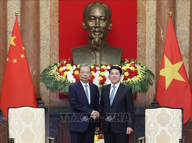 | Chủ tịch nước Lương Cường tiếp Ủy viên trưởng Nhân đại toàn quốc Trung Quốc Triệu Lạc Tế. Ảnh: Lâm Khánh/TTXVN |