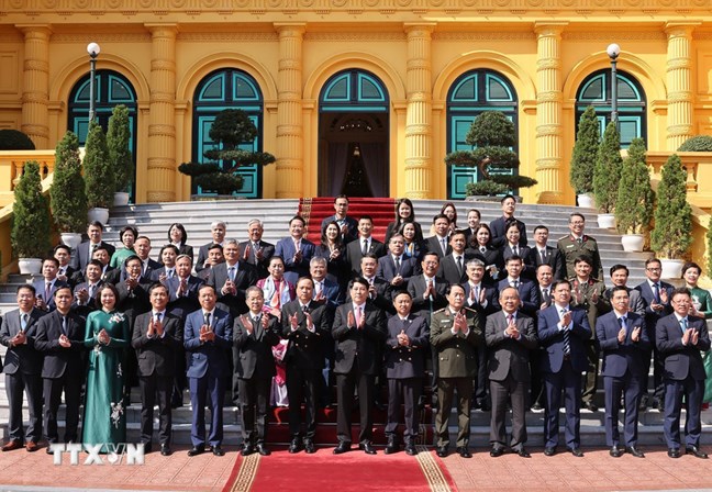 | Chủ tịch nước Lương Cường trao quyết định bổ nhiệm Phó Chánh án Toà án Nhân dân tối cao đối với hai đồng chí Lê Tiến và Nguyễn Biên Thùy. (Ảnh: Lâm Khánh/TTXVN) |