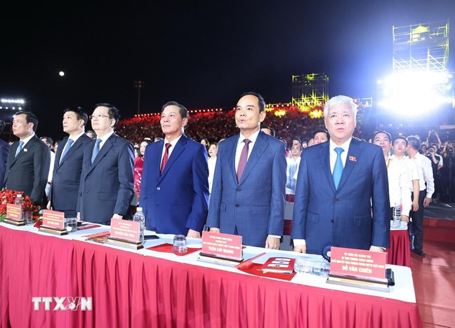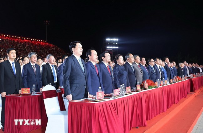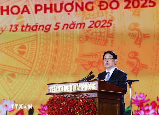 | Chủ tịch nước Lương Cường cùng các đại biểu dự lễ kỷ niệm 70 năm Ngày giải phóng Hải Phòng (13/5/1955-13/5/2025). Ảnh: Lâm Khánh/TTXVN |