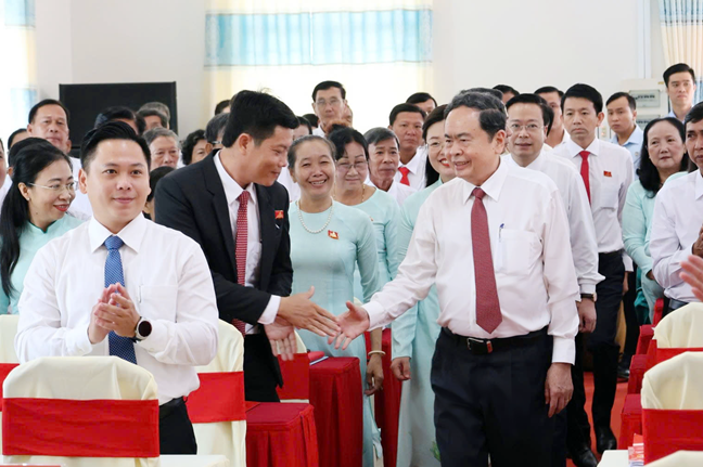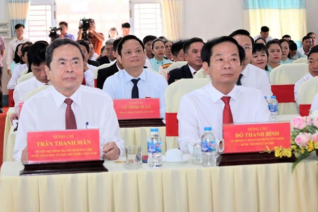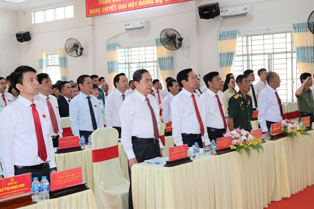 | Chủ tịch Quốc hội Trần Thanh Mẫn và các đại biểu dự Đại hội Đảng bộ xã Thạnh Xuân, thành phố Cần Thơ. Ảnh: Báo Đại biểu nhân dân |