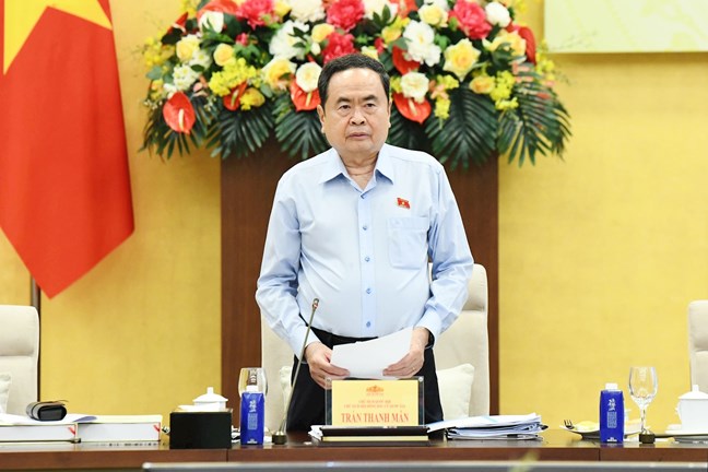 | Chủ tịch Quốc hội Trần Thanh Mẫn - Chủ tịch Hội đồng Bầu cử quốc gia phát biểu tại Phiên họp. Ảnh: Lâm Hiển |