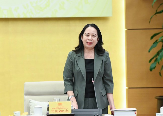 | Ủy viên Trung ương Đảng, Phó Chủ tịch nước Võ Thị Ánh Xuân - Phó Chủ tịch Hội đồng Bầu cử quốc gia phát biểu. Ảnh: Lâm Hiển |
