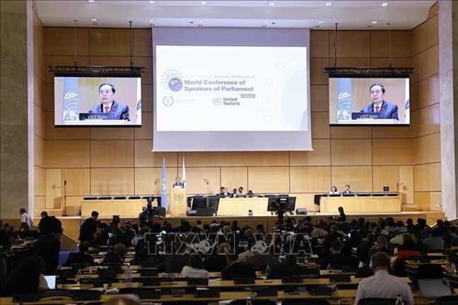 (Mặt trận) - Chiều 29/7 theo giờ địa phương, tại Geneva (Thụy Sĩ), Chủ tịch Quốc hội Trần Thanh Mẫn đã có bài phát biểu quan trọng tại Phiên thảo luận chung của Hội nghị các Chủ tịch Quốc hội thế giới lần thứ 6.