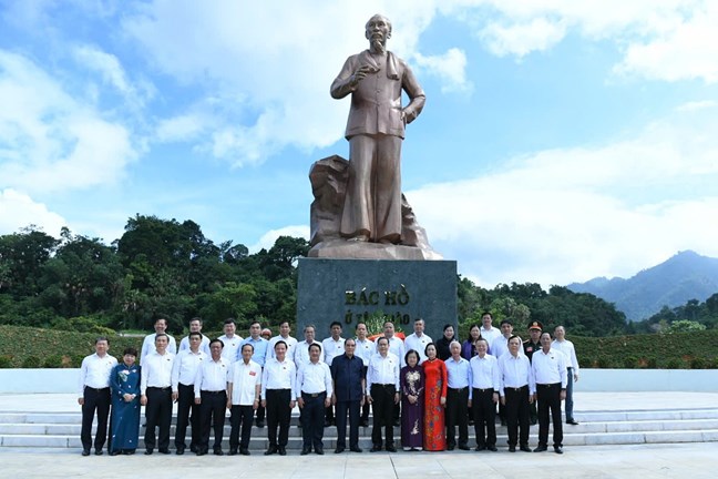 | Chủ tịch Quốc hội Trần Thanh Mẫn và các đại biểu chụp ảnh lưu niệm tại tượng đài Bác Hồ, tỉnh Tuyên Quang |