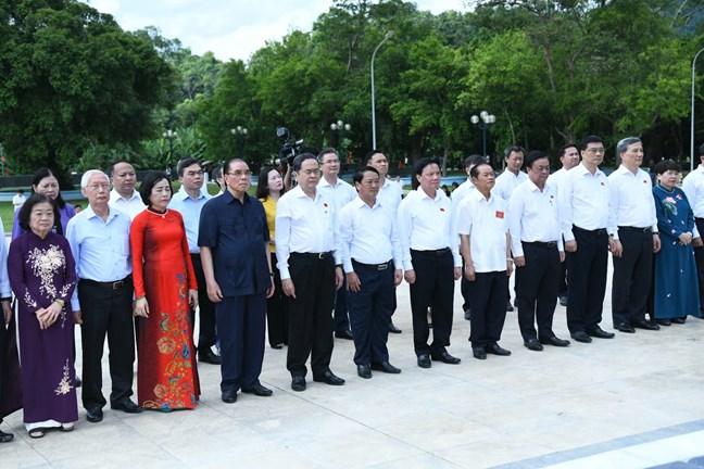| Chủ tịch Quốc hội Trần Thanh Mẫn và các đại biểu dâng hoa tưởng tại tượng đài Chủ tịch Hồ Chí Minh |