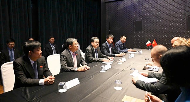 Nhấn mạnh, tại các cuộc gặp, hai bên trao đổi các biện pháp thúc đẩy hợp tác toàn diện, làm sâu sắc hơn quan hệ Đối tác chiến lược Việt Nam - Italia, hướng tới nâng cấp quan hệ trong thời gian tới, Chủ tịch Quốc hội cũng cho biết, sẽ đề nghị phía Italia tiếp tục tạo điều kiện để các cơ quan, tổ chức, hiệp hội hai nước phát huy vai trò cầu nối, thúc đẩy hợp tác thiết thực, hiệu quả.