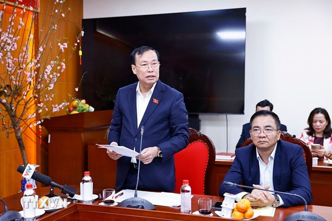| Chủ tịch Quốc hội Trần Thanh Mẫn phát biểu tại buổi gặp mặt, chúc Tết cán bộ, công chức, ủy viên Ủy ban Khoa học, Công nghệ và Môi trường của Quốc hội. (Ảnh: Doãn Tấn/TTXVN) |
