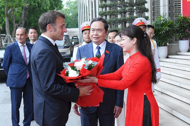 Tổng thống Emmanuel Macron bày tỏ cảm kích trước sự đón tiếp nồng hậu của Chủ tịch Quốc hội Trần Thanh Mẫn và các Lãnh đạo Đảng, Nhà nước Việt Nam. Chúc mừng những thành tựu phát triển của Việt Nam, Tổng thống Emmanuel Macron hy vọng chuyến thăm này sẽ mở ra những phương hướng hợp tác mới trong quan hệ Đối tác chiến lược toàn diện Việt Nam – Pháp, đặc biệt trong các lĩnh vực hạ tầng chiến lược, năng lượng mới, giao thông, logistics …