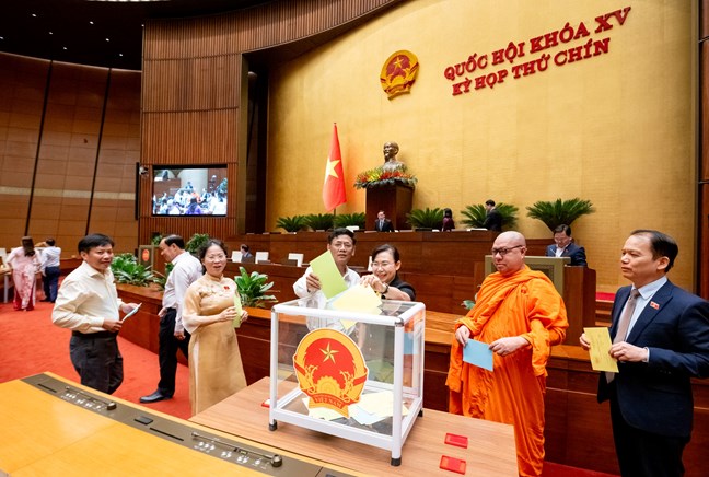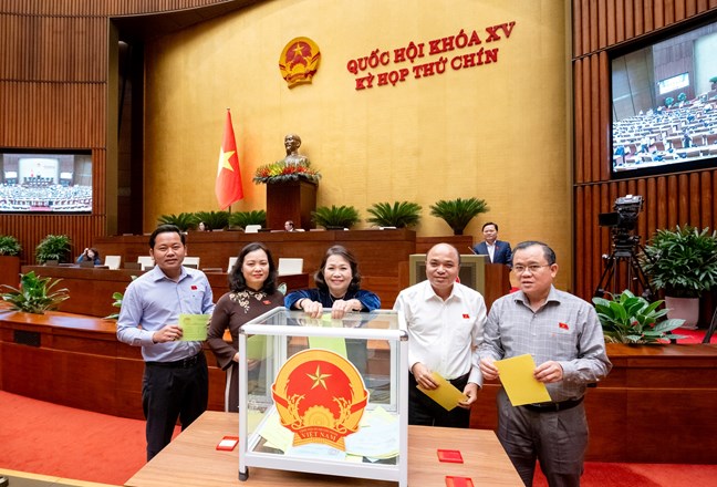 Quốc hội bầu Chủ tịch Hội đồng bầu cử quốc gia, Ủy viên Ủy ban Thường vụ Quốc hội khóa XV, Chủ tịch Hội đồng Dân tộc của Quốc hội khóa XV bằng hình thức bỏ phiếu kín.
