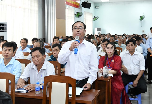 | Cử tri phát biểu tại hội nghị tiếp xúc cử tri |