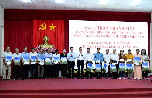 Tại cuộc gặp mặt, Chủ tịch Quốc hội Trần Thanh Mẫn và các thành viên Đoàn công tác đã trao các phần quà ý nghĩa tặng các gia đình chính sách, hộ nghèo; chúc bà con và gia đình một năm mới dồi dào sức khỏe, hạnh phúc, năm mới với nhiều thắng lợi mới.