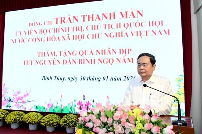 Phát biểu tại cuộc gặp mặt, thay mặt Lãnh đạo Đảng và Nhà nước, Chủ tịch Quốc hội Trần Thanh Mẫn gửi lời chúc sức khỏe, chúc mừng năm mới tốt đẹp nhất tới lãnh đạo thành phố Cần Thơ, phường Bình Thủy và cán bộ hưu trí, gia đình chính sách và nhân dân.