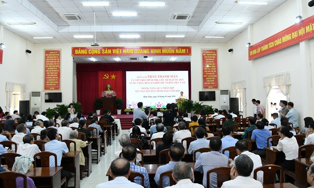 | Chủ tịch Quốc hội Trần Thanh Mẫn trao quà tặng các gia đình chính sách và hộ nghèo trên địa bàn phường Bình Thủy, TP. Cần Thơ |