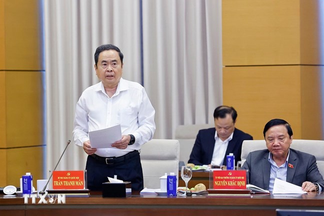 | Đồng chí Trần Thanh Mẫn, Ủy viên Bộ Chính trị, Bí thư Đảng uỷ Quốc hội, Chủ tịch Quốc hội phát biểu ý kiến. Ảnh: Doãn Tấn/TTXVN |