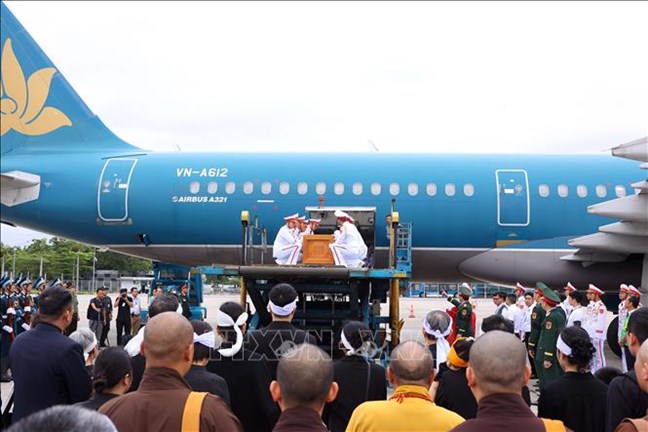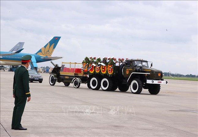 | Lễ chuyển linh cữu nguyên Chủ tịch nước Trần Đức Lương lên chuyên cơ tại Cảng Hàng không quốc tế Nội Bài để về quê nhà Quảng Ngãi. Ảnh: TTXVN |