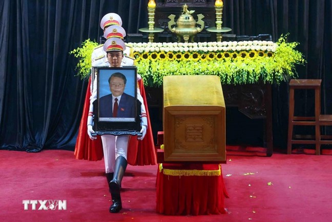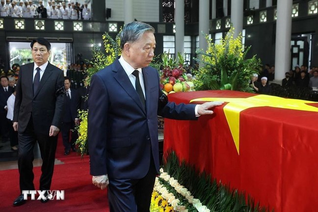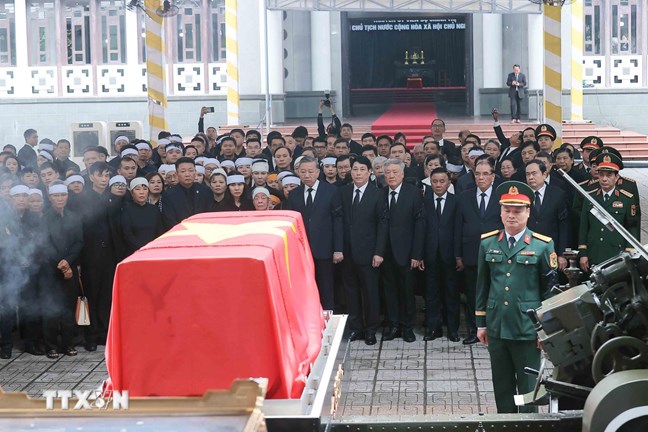 Trong niềm xúc động, Chủ tịch nước bày tỏ: “Vĩnh biệt đồng chí, toàn Đảng, toàn dân và toàn quân quyết tâm đoàn kết một lòng, ra sức phấn đấu tiếp tục đi theo con đường cách mạng vẻ vang mà Đảng, Bác Hồ kính yêu và Nhân dân ta đã lựa chọn; kiên định chủ nghĩa Mác-Lênin, tư tưởng Hồ Chí Minh; kiên định độc lập dân tộc và chủ nghĩa xã hội; phát huy cao độ tinh thần yêu nước, ý chí tự tin, tự lực, tự cường, sức mạnh đại đoàn kết toàn dân tộc; đẩy mạnh toàn diện, đồng bộ công cuộc đổi mới, đưa đất nước vững bước vào kỷ nguyên mới - kỷ nguyên phát triển giàu mạnh và thịnh vượng của dân tộc Việt Nam thân yêu của chúng ta”.
