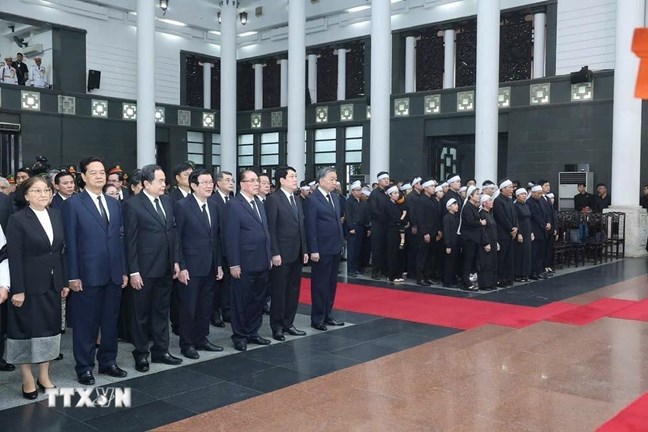 Dự Lễ truy điệu tại Nhà Tang lễ Quốc gia, số 5 Trần Thánh Tông (Hà Nội) có các đồng chí: Tổng Bí thư Tô Lâm; Chủ tịch nước Lương Cường; Chủ tịch Quốc hội Trần Thanh Mẫn.