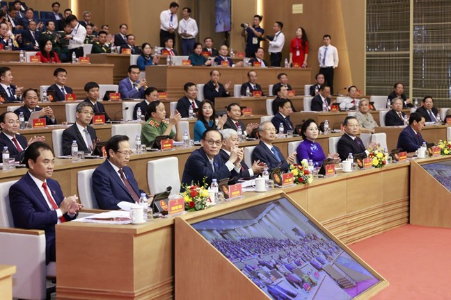 | Các đồng chí Ủy viên Bộ Chính trị, Bí thư Trung ương Đảng và các đại biểu dự Đại hội. |