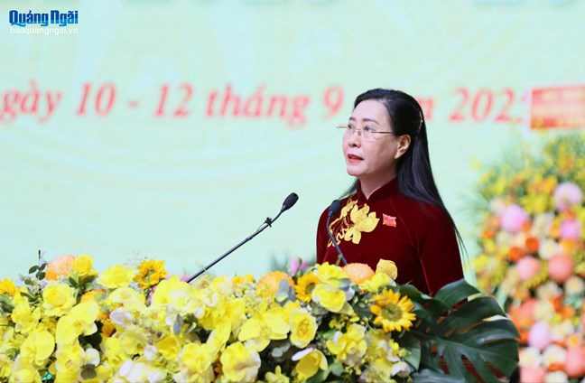 | Ủy viên Trung ương Đảng, Bí thư Tỉnh ủy Bùi Thị Quỳnh Vân phát biểu khai mạc đại hội. Ảnh: Báo Quảng Ngãi |