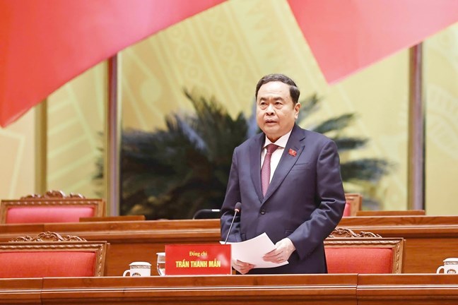 | Ủy viên Bộ Chính trị, Chủ tịch Quốc hội Trần Thanh Mẫn điều hành phiên họp |