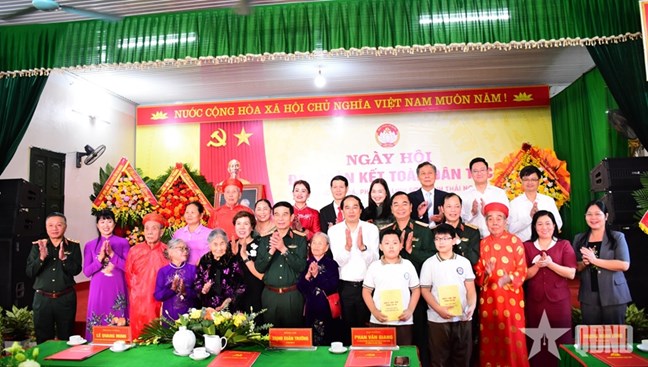 | Đại tướng Phan Văn Giang, Ủy viên Bộ Chính trị, Phó bí thư Quân ủy Trung ương, Bộ trưởng Bộ Quốc phòng dự Ngày hội Đại đoàn kết toàn dân tộc tại tổ dân phố Mỏ Đá (phường Linh Sơn, tỉnh Thái Nguyên). |