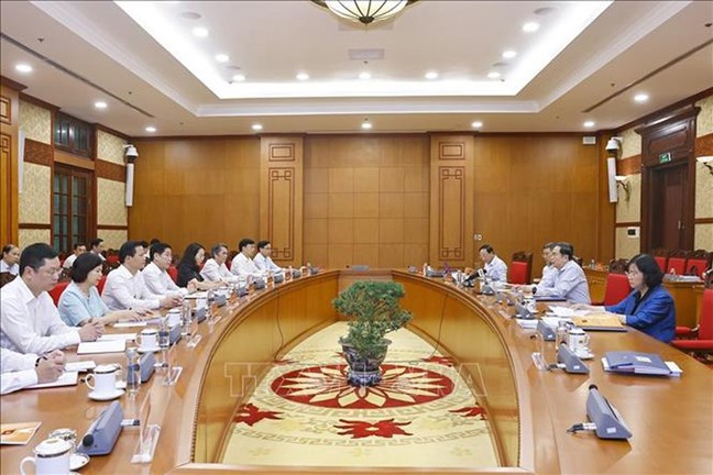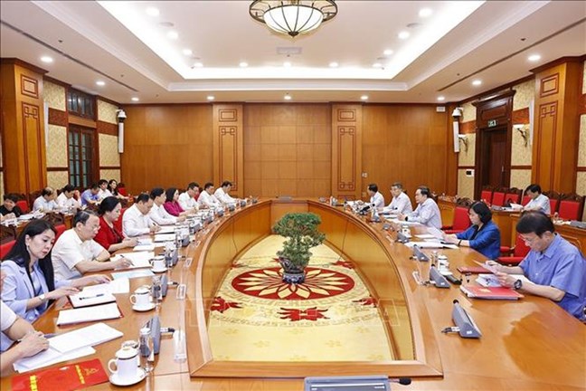 Cùng dự buổi làm việc có các đồng chí: Lê Minh Hưng, Ủy viên Bộ Chính trị, Bí thư Trung ương Đảng, Trưởng ban Tổ chức Trung ương; Nguyễn Trọng Nghĩa, Ủy viên Bộ Chính trị, Bí thư Trung ương Đảng, Trưởng ban Tuyên giáo và Dân vận Trung ương; Nguyễn Xuân Thắng, Ủy viên Bộ Chính trị, Giám đốc Học viện Chính trị Quốc gia Hồ Chí Minh, Chủ tịch Hội đồng Lý luận Trung ương; Phan Văn Giang, Ủy viên Bộ Chính trị, Bộ trưởng Bộ Quốc phòng; Lương Tam Quang, Ủy viên Bộ Chính trị, Bộ trưởng Bộ Công an; Bùi Thị Minh Hoài, Ủy viên Bộ Chính trị, Bí thư Thành ủy Hà Nội; Lê Minh Trí, Bí thư Trung ương Đảng, Chánh án Tòa án nhân dân tối cao; Trịnh Văn Quyết, Bí thư Trung ương Đảng, Chủ nhiệm Tổng cục Chính trị Quân đội nhân dân Việt Nam và đại diện lãnh đạo các Ban Đảng Trung ương, Văn phòng Trung ương Đảng và một số bộ, ngành Trung ương.