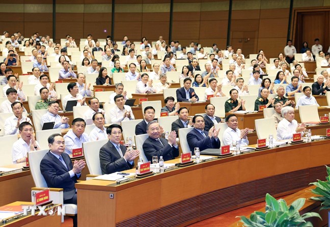 | Tổng Bí thư Tô Lâm và các đại biểu tham dự Hội nghị tại điểm cầu chính Phòng họp Diên Hồng, Nhà Quốc hội, Hà Nội. Ảnh: Thống Nhất/TTXVN |