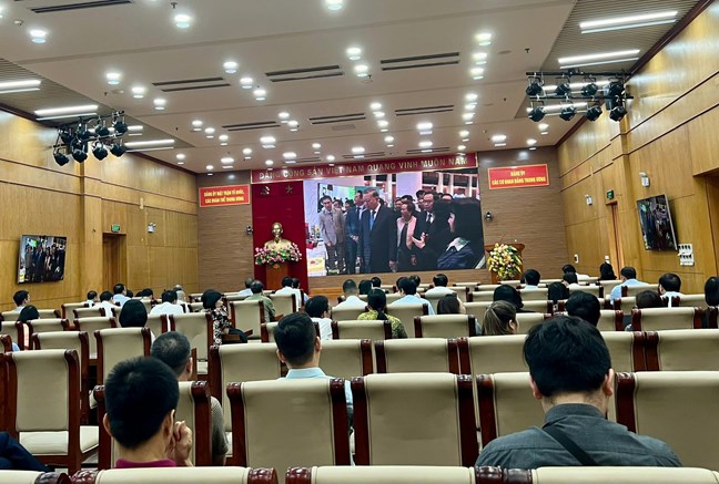 | Đại biểu tham dự tại điểm cầu Trung tâm Đảng ủy MTTQ, các đoàn thể Trung ương. |