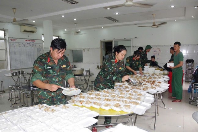 Quân khu 5 chuẩn bị những suất cơm cho bà con vùng lũ