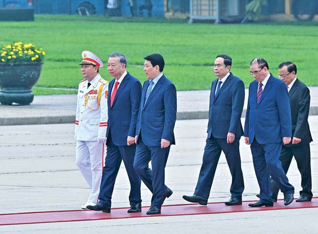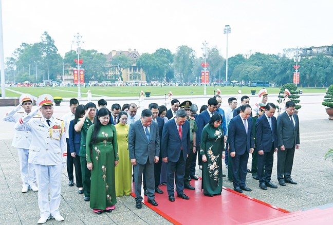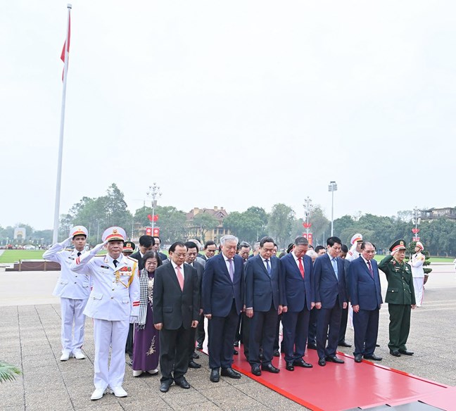 | Đoàn đại biểu Lãnh đạo, nguyên Lãnh đạo Đảng, Nhà nước do Tổng Bí thư Tô Lâm dẫn đầu thành kính tưởng niệm Chủ tịch Hồ Chí Minh. Ảnh: An Đăng/TTXVN |