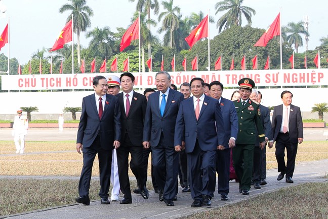 (Mặt trận) - Sáng nay, 20/10, ngay trước phiên khai mạc Kỳ họp thứ Mười, Quốc hội Khóa XV, Tổng Bí thư Tô Lâm, Chủ tịch nước Lương Cường, Thủ tướng Chính phủ Phạm Minh Chính, Chủ tịch Quốc hội Trần Thanh Mẫn cùng lãnh đạo Đảng, Nhà nước và các đại biểu Quốc hội đã vào lăng viếng Chủ tịch Hồ Chí Minh.