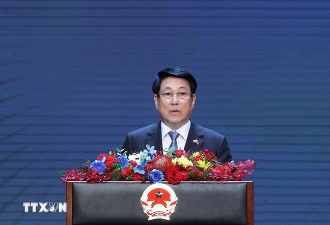 | Chủ tịch nước Lương Cường phát biểu. Ảnh: Lâm Khánh/TTXVN |
