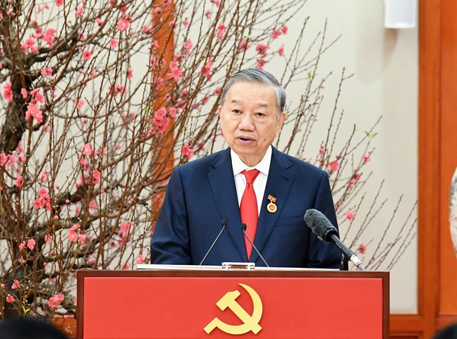 | Các đồng chí Lãnh đạo, nguyên Lãnh đạo Đảng, Nhà nước chúc mừng Tổng Bí thư Tô Lâm |