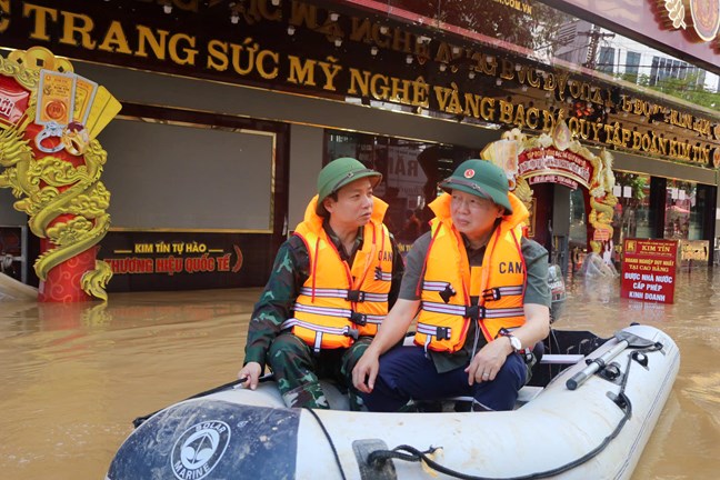 | Phó Thủ tướng Trần Hồng Hà thị sát các vùng bị ngập lụt tại TP. Cao Bằng - Ảnh: TTXVN |