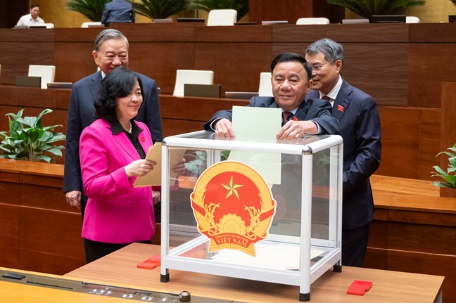 | Tổng Bí thư Tô Lâm bỏ phiếu bầu Phó Thủ tướng, Bộ trưởng và thành viên khác của Chính phủ. Ảnh. Phạm Thắng |