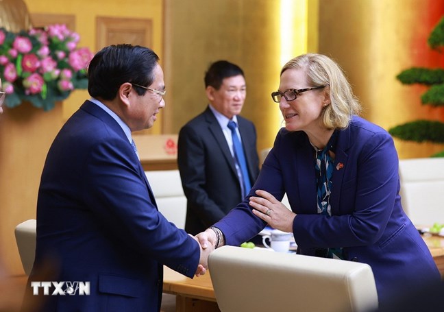 | Thủ tướng Phạm Minh Chính với đại diện Đại sứ quán Hoa Kỳ tại Việt Nam. Ảnh: Dương Giang/TTXVN |