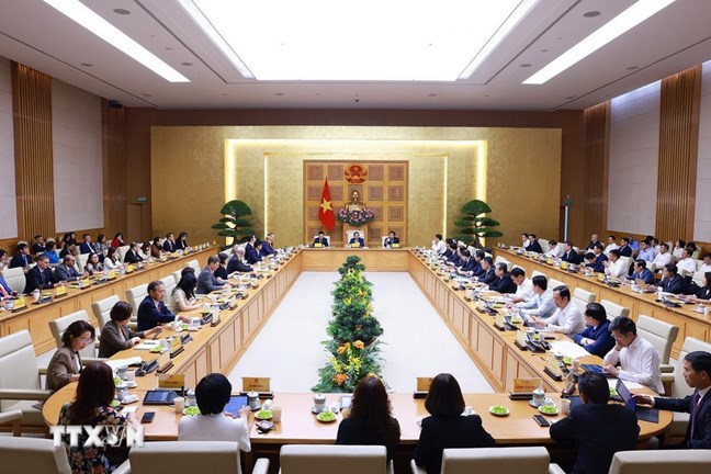 | Thủ tướng Phạm Minh Chính gặp mặt đại diện các doanh nghiệp Hoa Kỳ đang đầu tư, kinh doanh tại Việt Nam. Ảnh: Dương Giang/TTXVN |