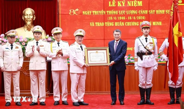| Thủ tướng Lê Minh Hưng dự Lễ kỷ niệm 80 năm Ngày truyền thống lực lượng Cảnh sát hình sự. (Ảnh: Dương Giang/TTXVN) |