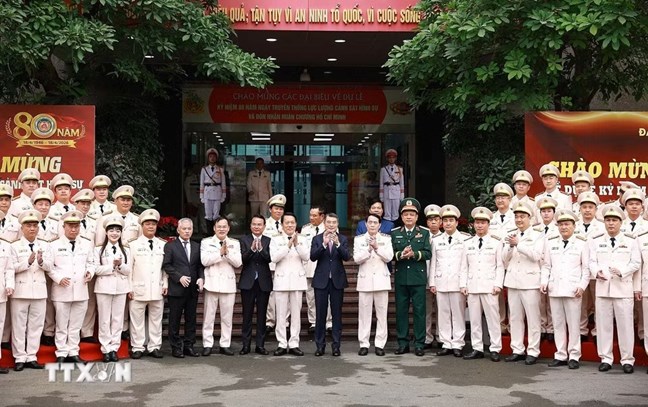 | Thủ tướng Lê Minh Hưng với các đại biểu dự Lễ kỷ niệm 80 năm Ngày truyền thống lực lượng Cảnh sát hình sự. (Ảnh: Dương Giang/TTXVN) |