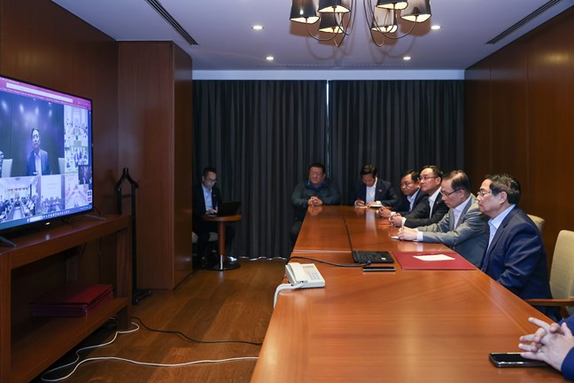 | Phó Thủ tướng Thường trực Chính phủ Nguyễn Hòa Bình dự tại điểm cầu trụ sở Chính phủ - Ảnh VGP/Đình Hải |
